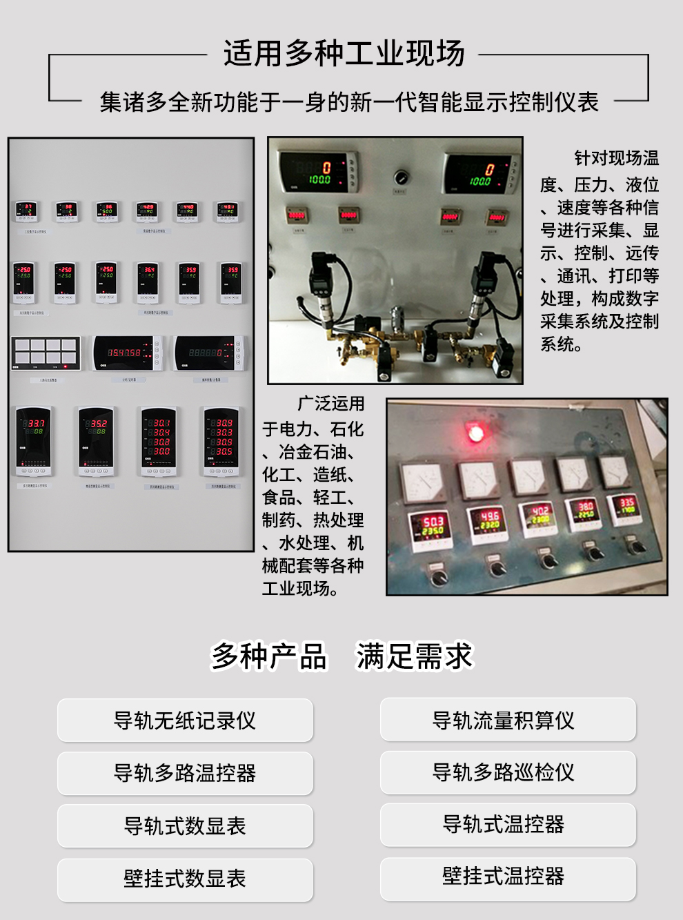 虹潤公司是專業(yè)生產(chǎn)多路溫度巡檢儀的國家專精特新“小巨人”企業(yè)。生產(chǎn)的導(dǎo)軌多路巡檢儀,具有八回路巡檢采集,全切換信號輸入,高抗電磁干擾,全隔離設(shè)計,分別報警/分別變送輸出等特點。產(chǎn)品獲得巡回檢測顯示方法及裝置以及工業(yè)模塊的導(dǎo)軌式安裝結(jié)構(gòu)等2項國家發(fā)明專利,主持起草工業(yè)過程控制系統(tǒng)用模擬輸入兩位或多位輸出儀表、物聯(lián)網(wǎng)智能溫度儀表通用技術(shù)條件等2項國家標準,以及通信系統(tǒng)多通道數(shù)據(jù)采集控制終端規(guī)范軍用標準,參與國際5G標準制定,取得巡回檢測控制儀等3項相關(guān)軟件著作權(quán)。產(chǎn)品廣泛應(yīng)用于石化、冶金、電力、食品、制藥、水處理、實驗室等諸多領(lǐng)域。