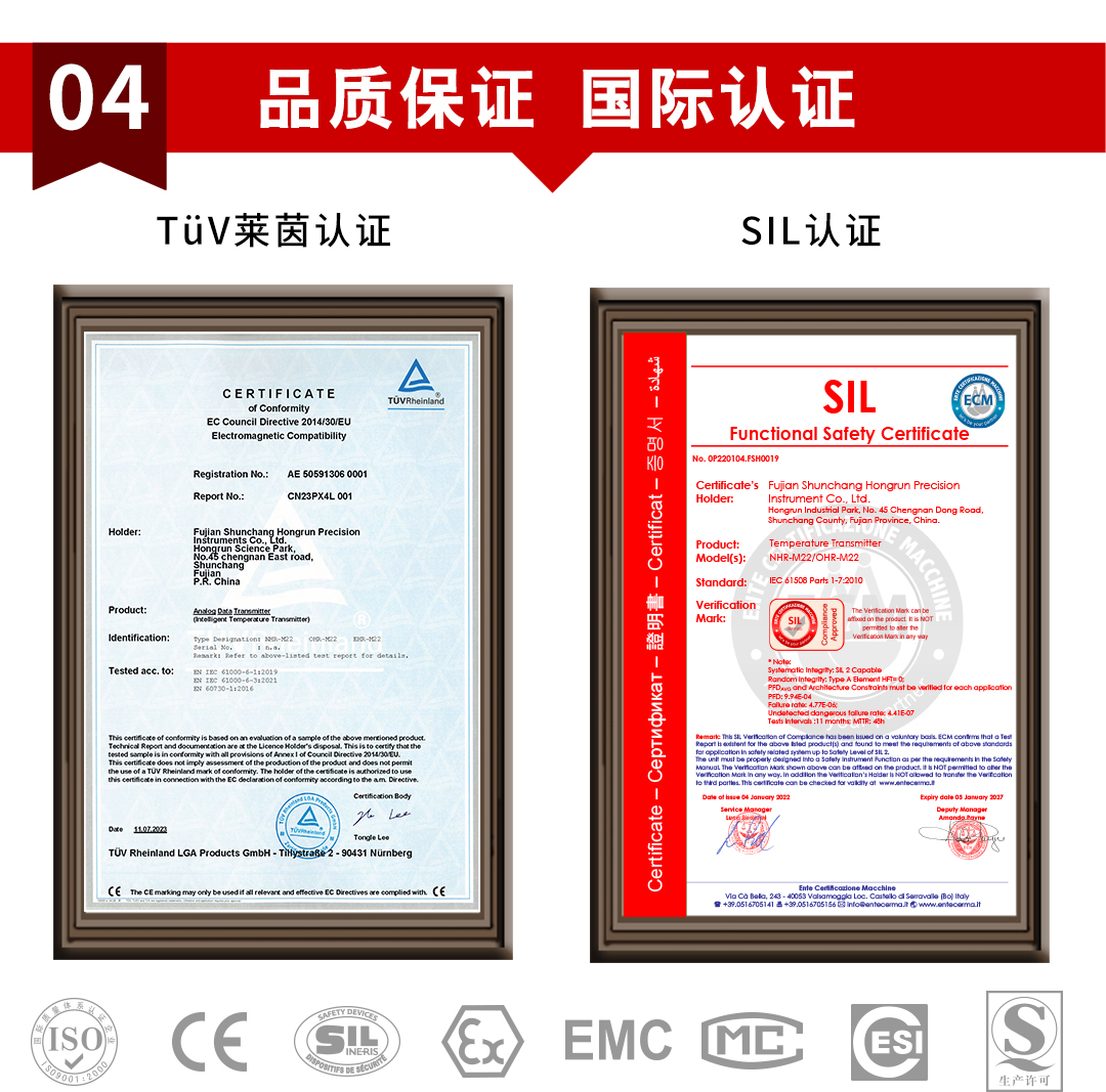 虹潤(rùn)公司是專業(yè)生產(chǎn)溫度變送器的國(guó)家專精特新“小巨人”企業(yè)。生產(chǎn)的溫度變送器,具有采用磁隔離技術(shù),配套編程器可修改參數(shù),抗干擾能力強(qiáng),穩(wěn)定性好,帶RS485或HART通訊等特點(diǎn)。該產(chǎn)品不僅通過(guò)HART基金會(huì)認(rèn)證、德國(guó)萊茵 CE 認(rèn)證與 SIL 功能安全認(rèn)證,還獲得具備減震抗干擾能力的溫度變送器、信號(hào)隔離器、一種二端子模塊、無(wú)源信號(hào)隔離器等4項(xiàng)國(guó)家發(fā)明專利,主持起草物聯(lián)網(wǎng)智能溫度儀表、現(xiàn)場(chǎng)設(shè)備工具(FDT)接口規(guī)范、工業(yè)過(guò)程測(cè)量和控制系統(tǒng)用溫度變送器等3項(xiàng)國(guó)家標(biāo)準(zhǔn),以及通信系統(tǒng)多通道數(shù)據(jù)采集控制終端規(guī)范軍用標(biāo)準(zhǔn),參與國(guó)際5G標(biāo)準(zhǔn)制定,取得溫度變送器等5項(xiàng)相關(guān)軟件著作權(quán)。產(chǎn)品廣泛應(yīng)用于石油、電力、化工,冶金、制藥、紡織、橡膠制造等工業(yè)領(lǐng)域現(xiàn)場(chǎng)自動(dòng)化測(cè)溫過(guò)程。