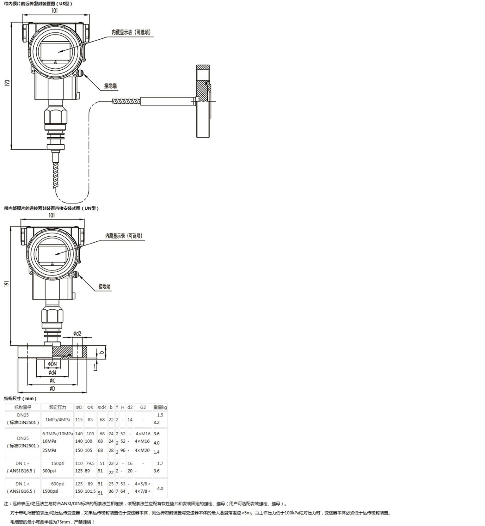 該產(chǎn)品用于測(cè)量液體、氣體或蒸汽的液位、密度、壓力,將其轉(zhuǎn)變成4~20mA (HART)電流輸出信號(hào),可通過RST375手持終端對(duì)它們進(jìn)行參數(shù)設(shè)定、過程監(jiān)控等。測(cè)量范圍(未遷移時(shí))為0-6kPa~25MPa,液位法蘭的額定壓力分別為:1.6/4MPa、6.4MPa、10MPa、150psi、300psi或600psi。